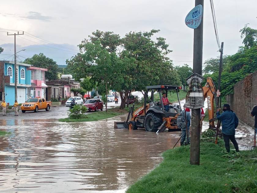 Las fuertes lluvias que bajaron de las partes altas también provocaron fuertes encharcamientos en tramos de la avenida Manuel J. Clouthier, principalmente frente a la Universidad Politécnica de Sinaloa y la colonia Progreso.