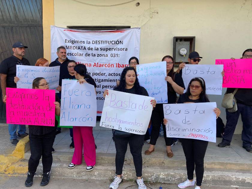 Docentes de la zona escolar 031 se manifestaron en demanda de la destitución de la supervisora escolar Iliana Alarcón. Acusan a la docente de abuso de poder y tratos autoritarios hacia el personal.