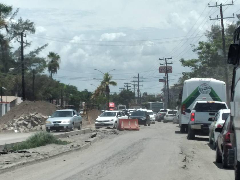 Se mantiene fuerte tráfico vehicular en Avenida Gabriel Leyva por obras de remodelación en Mazatlán