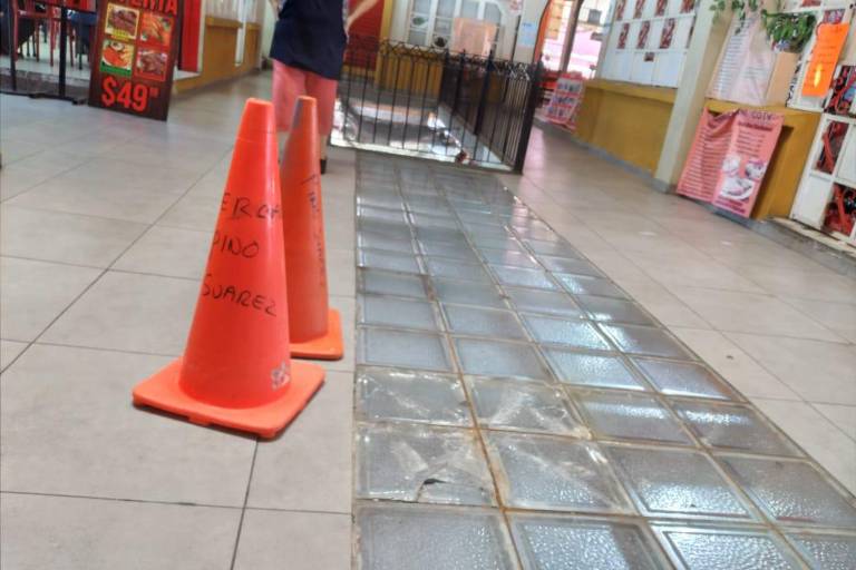 MAZATLÁN._ Apenas en 2018 se mostró con orgullo la remodelación del área gastronómica de la segunda planta del mercado municipal Pino Suárez, así como de la herrería general del inmueble... hoy, los cubos que conforman los tragaluces se están rompiendo uno a uno y representan un peligro para visitantes y locatarios.