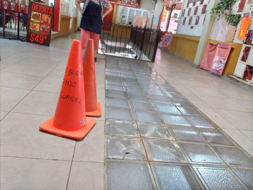 Se rompen tragaluces de la planta alta del mercado Pino Suárez, en Mazatlán