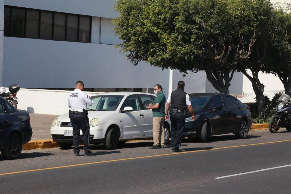 Noroeste observó cómo un automovilista en la Avenida Ejército Mexicano reclamó a policías de Tránsito el hecho de que le hayan aplicado una multa por estacionarse en la recién pintada línea amarilla.