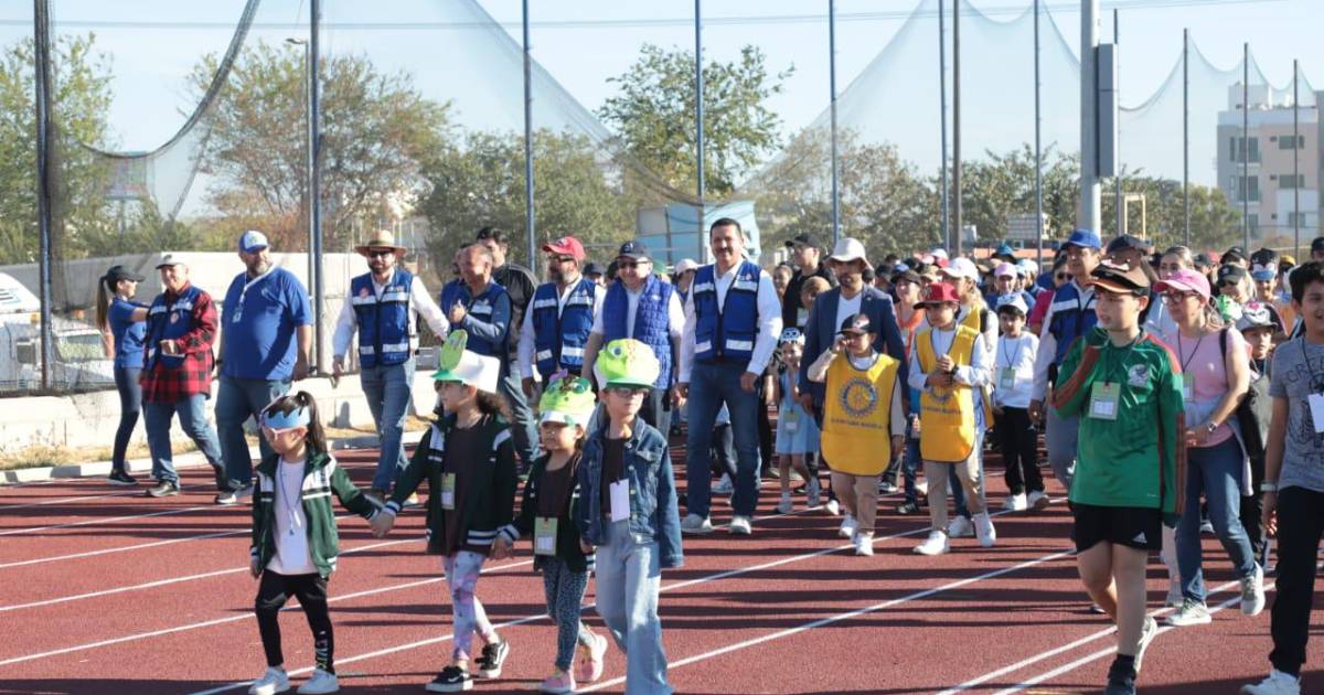 Más de mil 200 estudiantes de los niveles preescolar, primaria, secundaria, preparatoria, miembros y líderes de los Rotarios marcharon por la pista de tartán de las canchas de futbol del colegio, ubicadas en La Marina, lugar donde se celebró la actividad en un ambiente festivo y familiar.