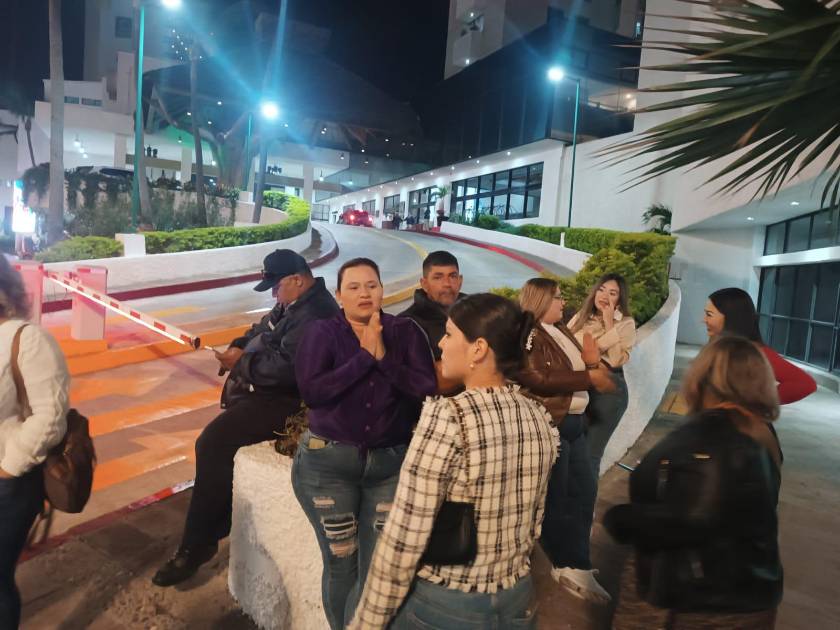 MAZATLÁN._ Un grupo de mazatlecos arribó a la avenida Camarón Sábalo para recibir a la Presidenta Claudia Sheinbaum en su llegada a un conocido hotel de la zona turística, donde pasará la noche previo a su evento de mañana.