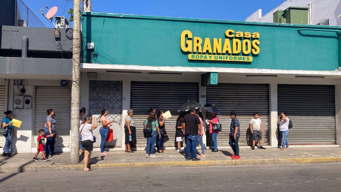 MAZATLÁN._ Sin tumultos ni incidentes siguen entregando uniformes, útiles y calzado deportivo, negocios del centro de Mazatlán en el segundo día.