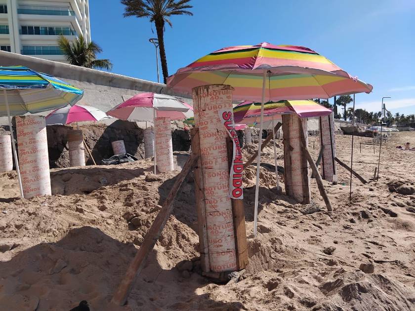MAZATLÁN._ En plena área de playa era realizada una obra de construcción en Mazatlán, pero fue suspendida por la Dirección de Planeación del Desarrollo Sustentable municipal.