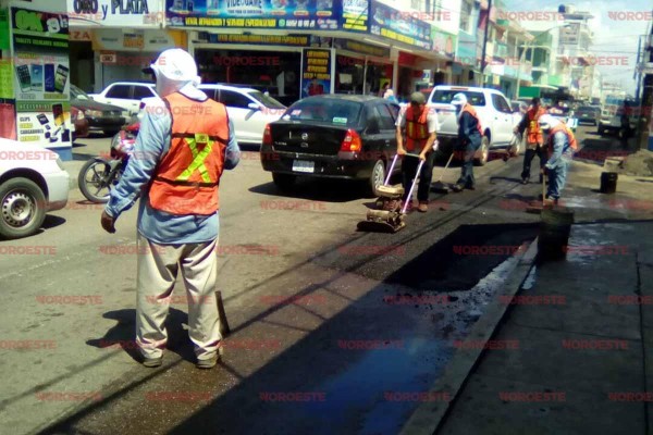 MAZATLÁN._ Con asfalto, un material de baja calidad, la Dirección de Obras Públicas Municipales inició un fuerte programa de bacheo en calles del Centro donde la lluvia de la semana pasada dejó al descubierto hoyos profundos, de riesgo para automovilistas y peligrosos para peatones.