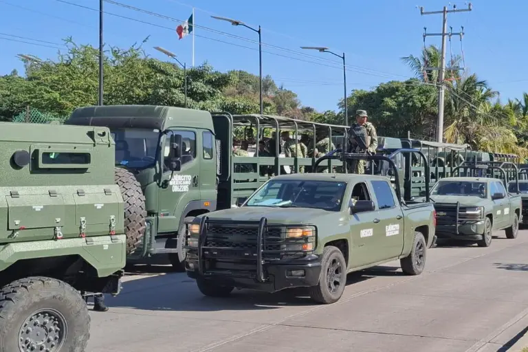 Unos cinco minutos después comenzó la salida de centenares de elementos del Ejército y Guardia Nacional hacia la Avenida Juan Pablo II.