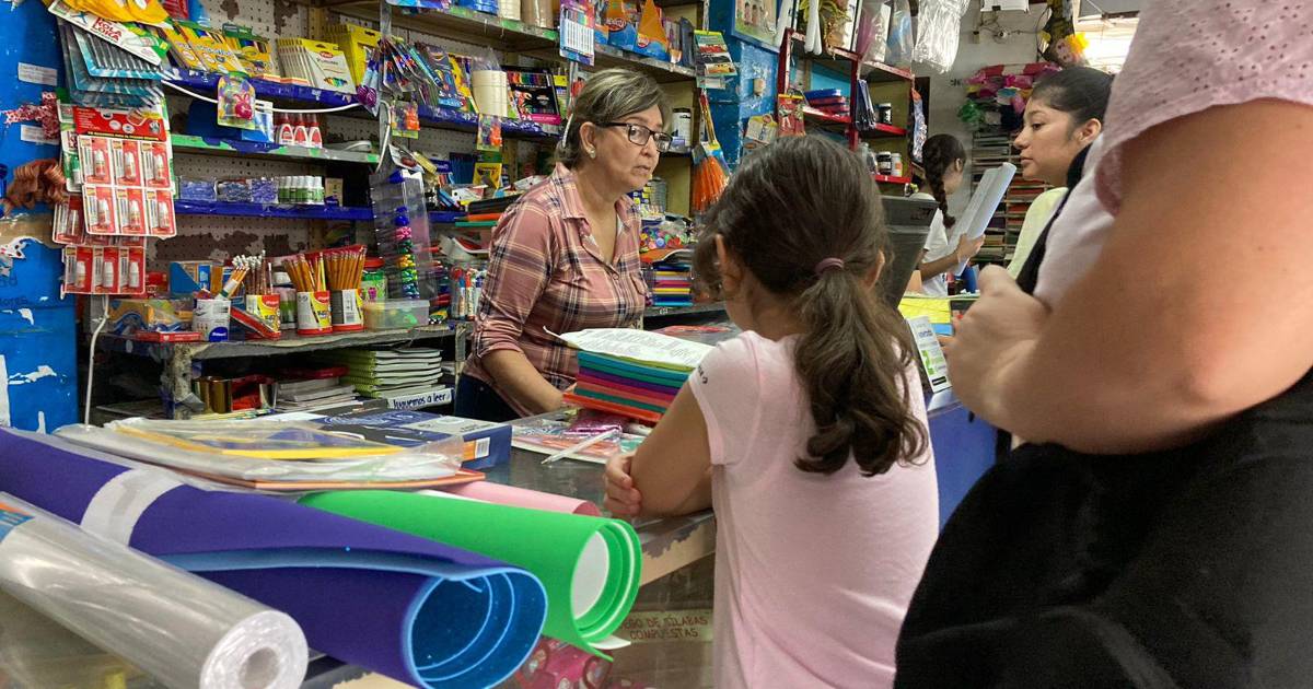 “La verdad que sí ha estado concurrido, como siempre en estas fechas; la gente que viene siempre de último momento a hacer sus compras y sí nos han tenido ocupados. Lo que más se vende son cuadernos, lápices, papel para forrar, tijeras, reglas, todo lo que los niños necesitan ya para iniciar el nuevo año escolar. Nosotros no abrimos los domingos, pero en estas temporadas sí estamos abriendo el local un rato, y sábado cerramos a las 19:00 horas”, explicó.