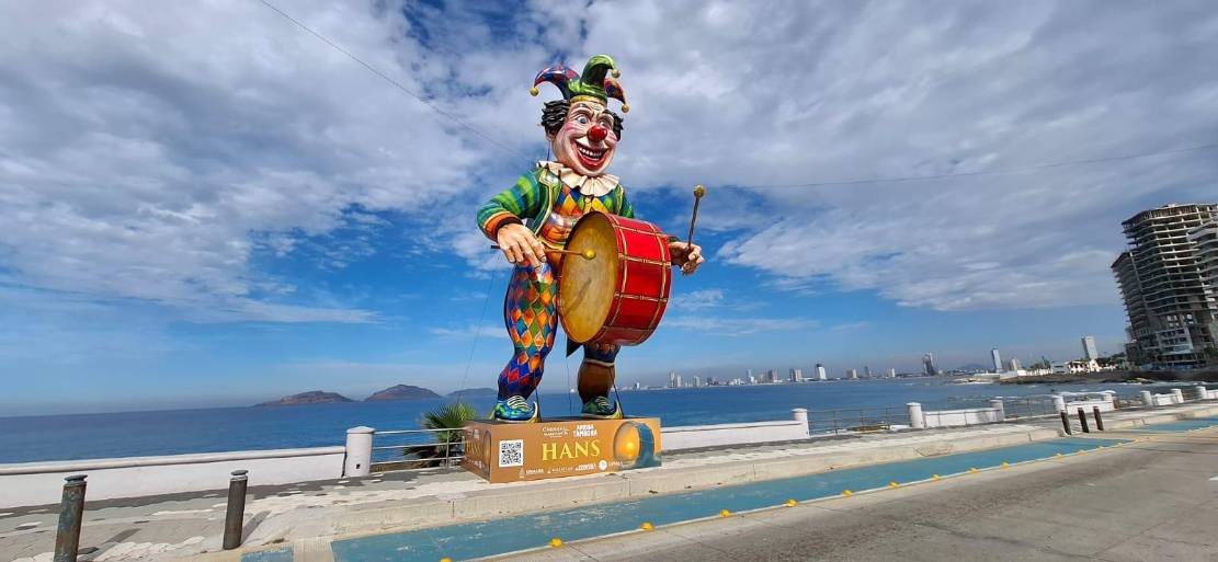 También del equipo Ninots surge el monigote ‘Hans’, una figura imponente que rinde homenaje al vínculo histórico entre Alemania y Sinaloa, en el nacimiento de la música banda, caracterizado como un arlequín europeo. Hans es un hombre orquesta que integra tambora, trompeta, platillos y batería, con un detallado modelado y marcando una presencia teatral, para reforzar el carácter festivo e internacional del Carnaval.