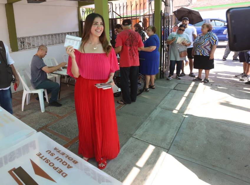 Fue poco antes de las 8:00 horas cuando la abanderada de los partidos Acción Nacional, Revolución Democrática y Revolucionario Institucional llegó acompañada de su mamá a la casilla básica 2894 ubicada en el domicilio ubicado en la calle Río San Lorenzo 606, del Fraccionamiento San Ángel, en este puerto.