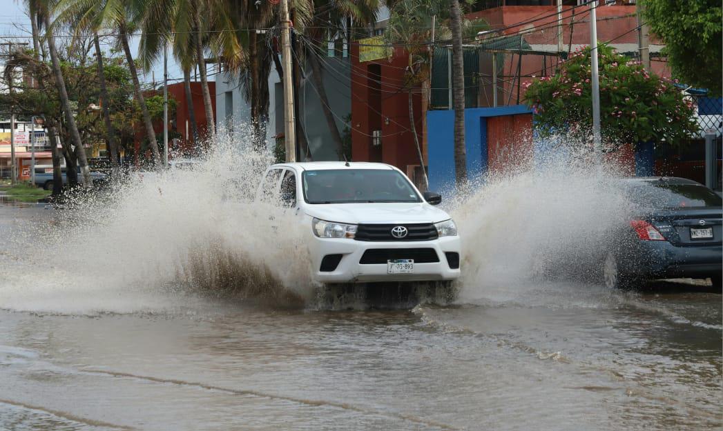 Tras lluvias en la madrugada, tramos de la avenida Cruz Lizárraga en Mazatlán amanecen inundados