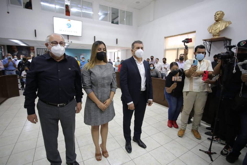 La mañana de este martes se nombró y tomó protesta como Secretario del Ayuntamiento de Mazatlán a Édgar Augusto González Zataráin, como Tesorero a Jesús Javier Alarcón Lizárraga y como Oficial Mayor a Nayla Adilene Velarde Narváez.