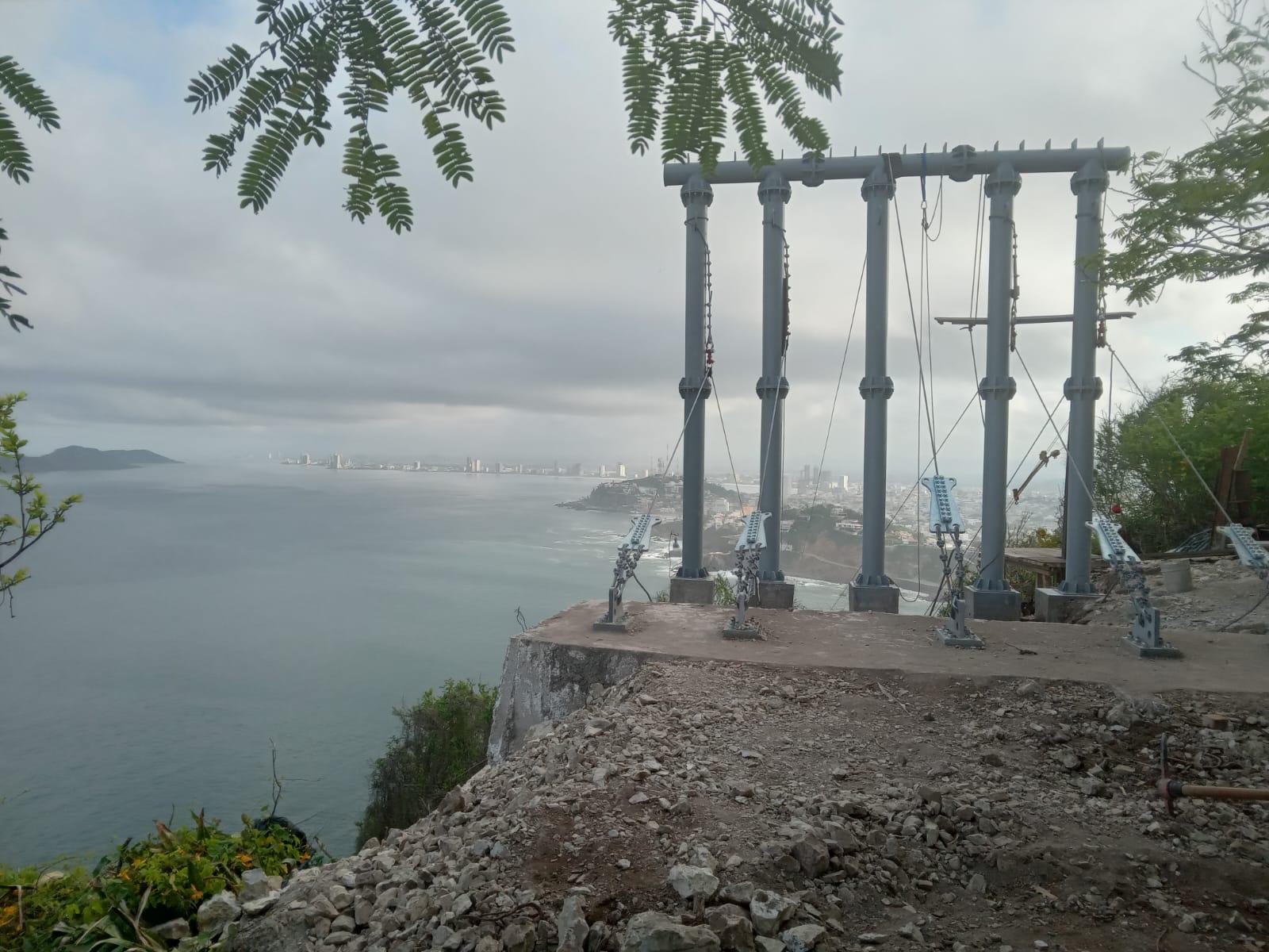 Tal y como se venías haciendo en las últimas semanas, los trabajos en la cima del faro de Mazatlán para el área de la tirolesa continúan, y se pueden ver como avanzan para llegar a la fecha estipulada de apertura, la cual se tiene para finales del mes agosto.