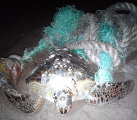 Los investigadores universitarios realizaban un recorrido de rutina en el perímetro del Campo Tortuguero en Playa Ceuta cuando les solicitaron auxilio para el rescate de una tortuga que estaba entre redes, por lo que acudieron a cortar las cuerdas que le envolvían el cuerpo.