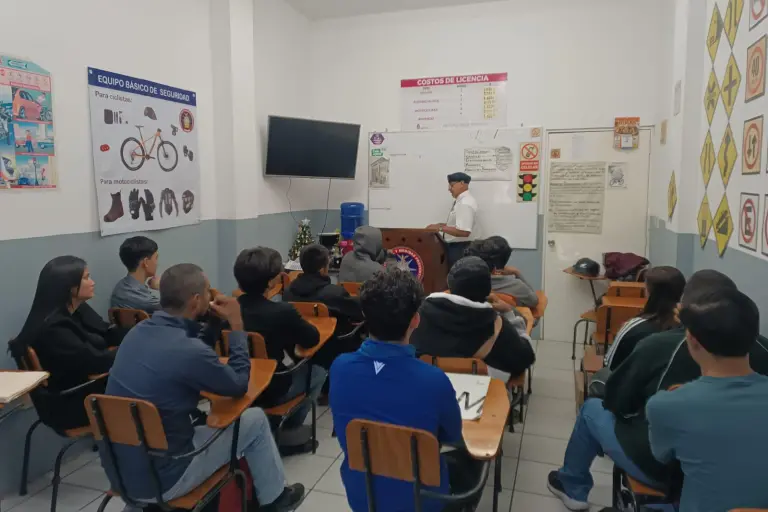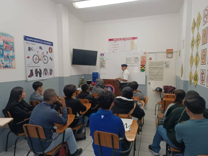 “(Está capacitación) es un convenio que hizo nuestro señor director, Marco Antonio Osuna, porque muchas veces el joven no puede venir a las oficinas, entonces nosotros le damos la capacitación allá y ya solo vienen para acá a hacer el examen de manejo”.