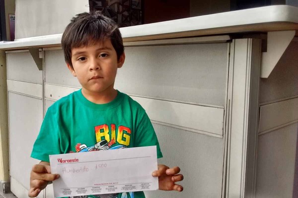 MAZATLÁN._ La ayuda sigue fluyendo en beneficio del pequeño Humberto Rafael Flores López, de 5 años; ayer se le entregó un nuevo donativo de 500 pesos.