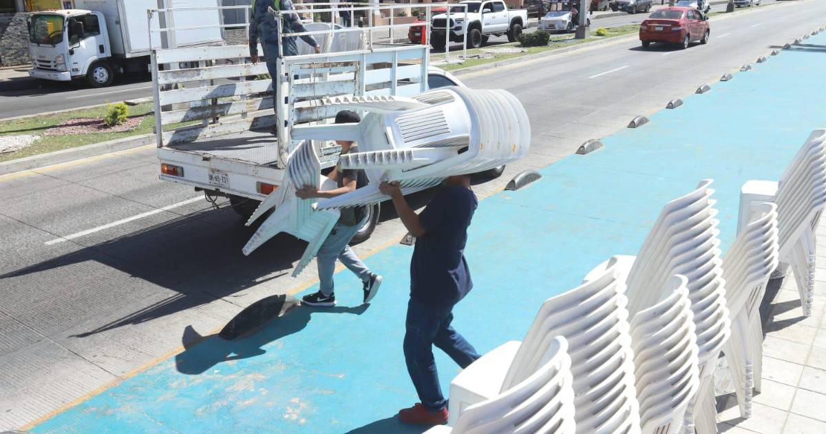 Continuará esta tarde el operativo para retirar sillas en renta de hasta 500 pesos cada una, así como las que colocan los restaurantes frente a ello, pues no tienen permiso para eso.