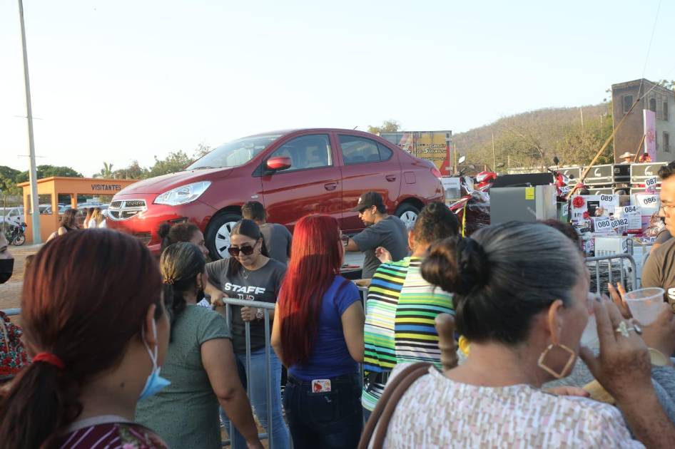 “Rifaremos un carro, un Dodge Attitude para las madres con más suerte en Mazatlán, y cinco motonetas, además que va a haber pantallas, lavadoras, estufas, de todo va a haber para ustedes”, se le escucha decir en un video de 43 segundos.