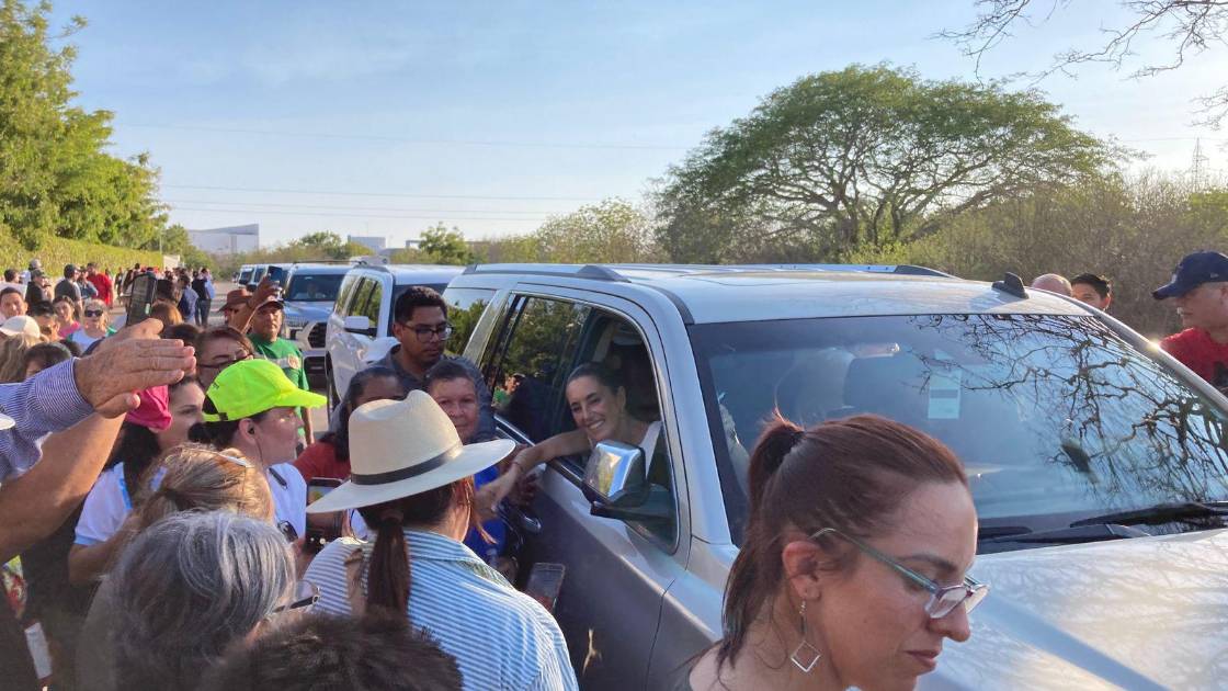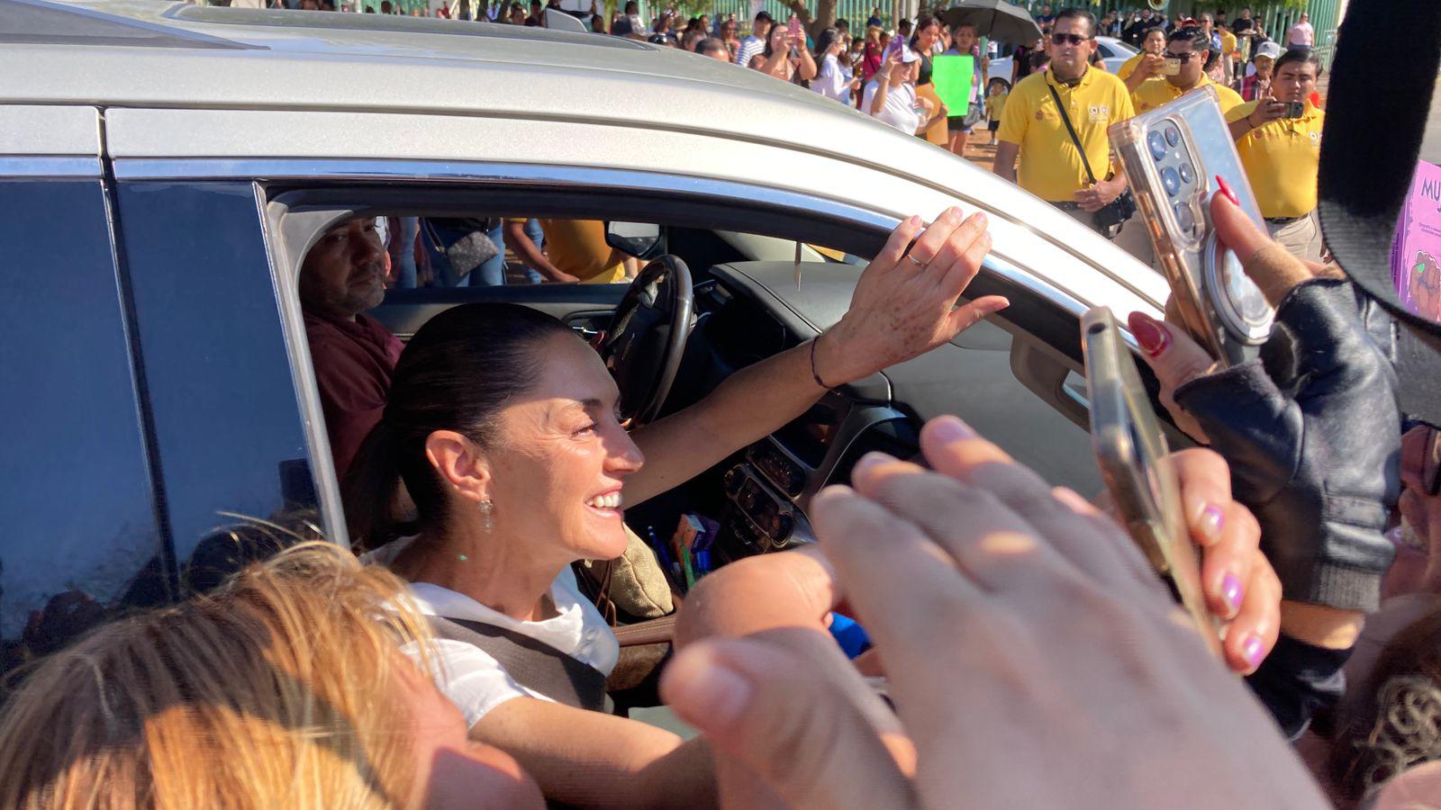 Conforme el tiempo fue avanzando, la multitud y la expectativa crecía, teniendo por un lado al grupo de simpatizantes, quienes, entre risas y emoción, esperaban la llegada de Sheinbaum Pardo para el aplauso y la “selfie” al ritmo de la música de banda que no se hizo esperar.