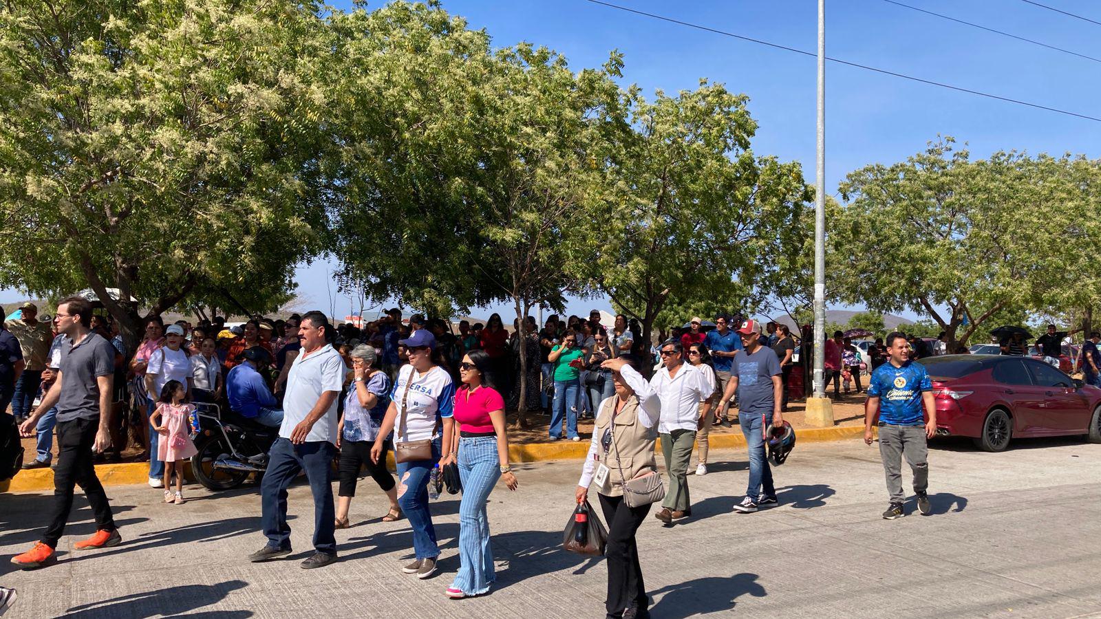 MAZATLÁN._ Desde el mediodía de este sábado, el sol golpeaba con fuerza las inmediaciones del Hospital General de Mazatlán, pero a pesar del calor, decenas de personas ya se encontraban en el lugar con la ilusión de ver a la Presidenta de México, Claudia Sheinbaum Pardo.