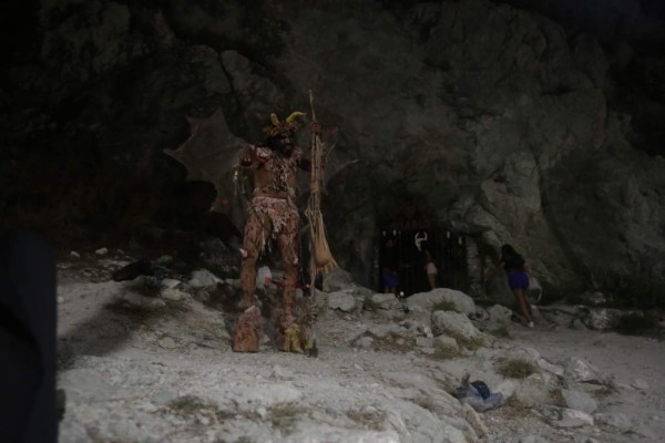 Se las ingenió y en la “Cueva del Diablo” vio la oportunidad de negocio y, de paso, contar la leyenda urbana del puerto. Desde este punto en Olas Altas, Apolinar González, de 36 años, le narra el misterio, enfundado en un disfraz de demonio, con cuernos y alas desgarradas.