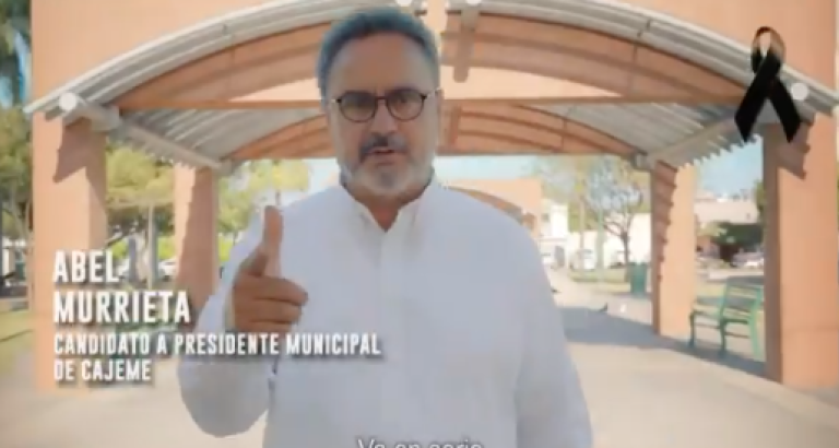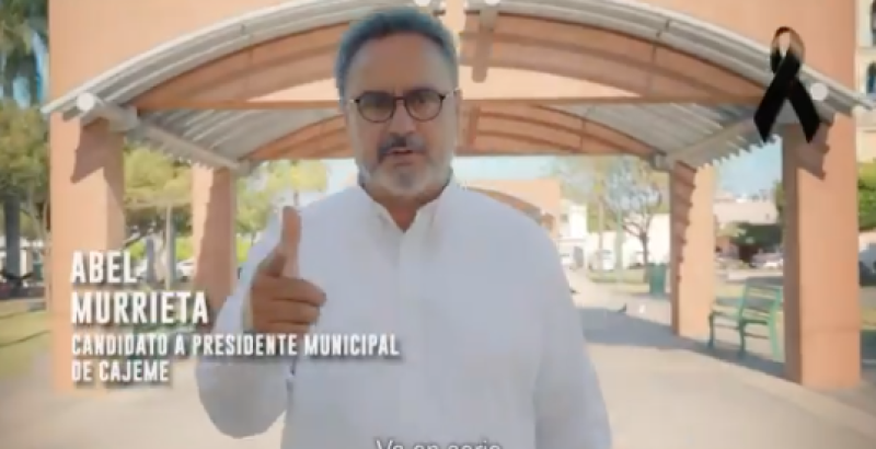 Abel Murrieta Gutiérrez, candidato a la Presidencia Municipal de Cajeme (Ciudad Obregón) por el partido Movimiento Ciudadano (MC) y ex procurador estatal de Sonora, asesinado el pasado 13 de mayo, grabó un spot, antes de su muerte, en el que prometía hacer frente a la delincuencia.