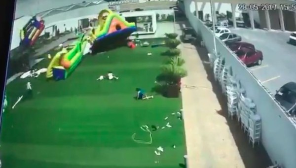 SAN LUIS POTOSÍ, SLP. (UNIV)._ La Procuraduría General de Justicia del Estado inició una investigación por las lesiones graves que sufrió la niña Fátima Monserrat, de 7 años, al caer de uno de los inflables que volaron durante una ráfaga de viento en el salón de fiestas Buonarroti, en la capital del estado.