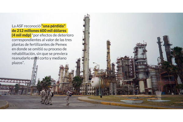 Más allá de las erogaciones de Pemex Fertilizantes y Pro-Agroindustria, la ASF determinó que la entrega-recepción de algunas obras de rehabilitación –en las plantas de Veracruz– fue realizada “sin que la empresa [receptora] hubiera realizado las pruebas de confiabilidad” necesarias.