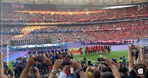 En las fotografías y videos que difundió se muestra contento por el triunfo del Liverpool, obtenido gracias a los goles de Mohamed Salah y Divock Origi.