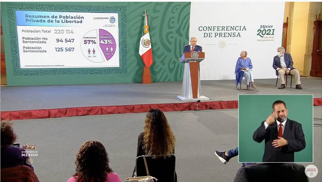 “Estas cuatro acciones van a formar parte de un decreto que voy a firmar y que va a elaborar la Secretaria de Gobernación [Segob] la semana próxima. Es importante que se tome en cuenta que hay muchos detenidos, reclusos, internos que no tienen sentencia y que no solo es fuero federal, también es fuero común y es la mayoría”, resaltó el mandatario nacional.