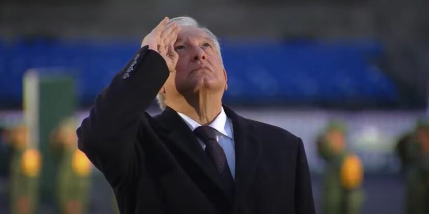 El presidente Andrés Manuel López Obrador encabezó, este domingo 19 de septiembre, el izamiento de la bandera de México a media asta, en honor a las víctimas de los sismos de septiembre de esa misma fecha, pero de 1985 y 2017, ocurridos en la Ciudad de México.