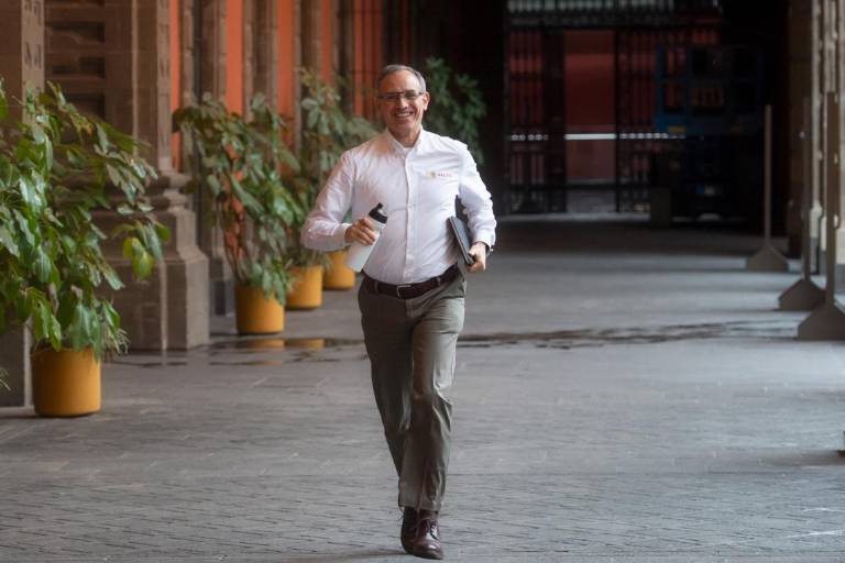Aunque no aparecía en la nómina del Gobierno federal, López-Gatell Ramírez publicó una fotografía este 21 de marzo, corriendo por uno de los pasillos del Palacio Nacional.