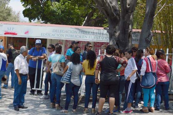 El viernes, profesores de la zona Centro, Norte, Acapulco y Tierra Caliente denunciaron por separado, la retención de los salarios de mil 15 maestros, de los que fueron notificados y no se presentaron a la evaluación docente, por lo que anunciaron el inicio de paros laborales indefinidos desde ya y el lunes, así como su participación en las marchas que se tienen previstas a partir del 15 de mayo, en contra de la Reforma educativa, evaluación docente y la exigencia de liberación de pagos.