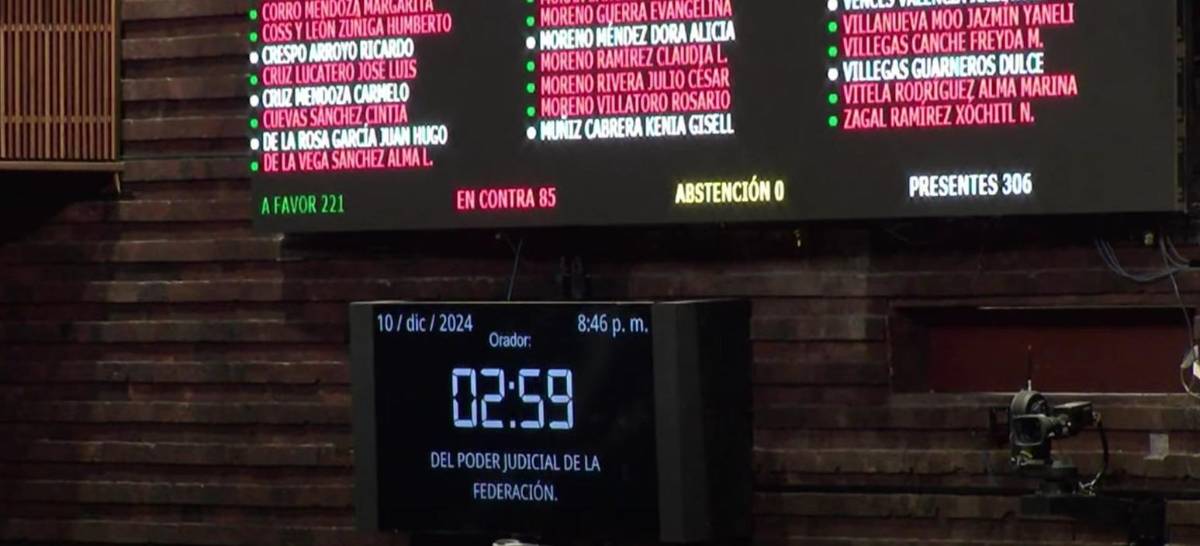 Con los votos a favor de los integrantes de los grupos parlamentarios de Morena, el Partido Verde Ecologista de México y el Partido del Trabajo, el Pleno de la Cámara de Diputados aprobó este martes, en lo general, las tres leyes secundarias de la reforma al Poder Judicial de la Federación enviadas por la Presidenta Claudia Sheinbaum Pardo.