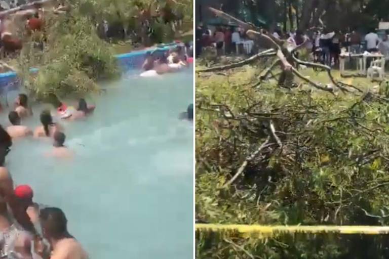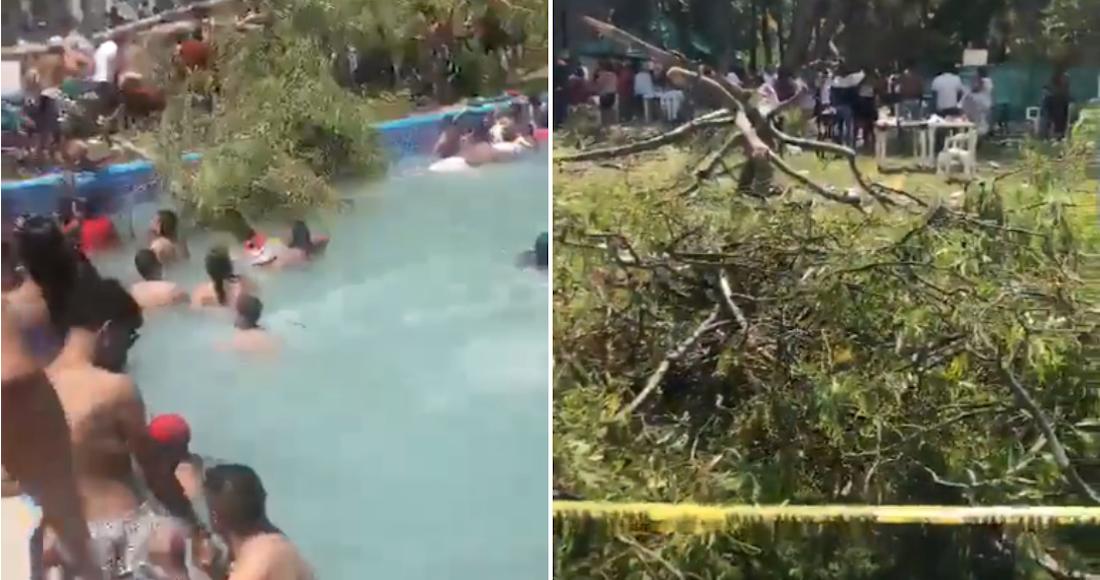Videos difundidos en redes sociales muestran cómo varias personas se apresuraron a salir de la alberca después de que el árbol cayó, otras miraron con sorpresa el lugar que luego fue resguardado.