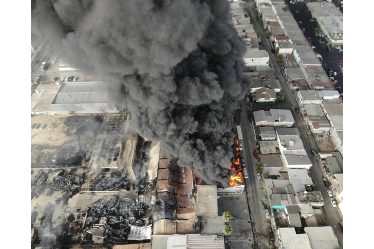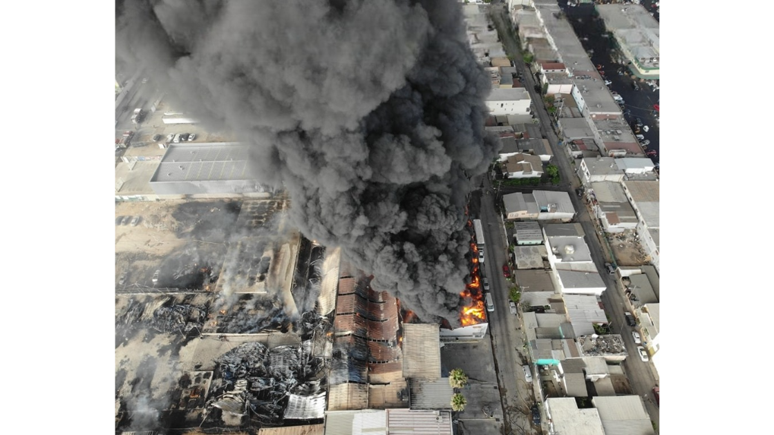 Arrasa incendio con fábrica de esponjas en Tijuana