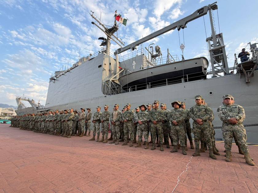 Arriba buque con personal de Infantería de Marina para reforzar la seguridad, en Puerto Vallarta, Jalisco