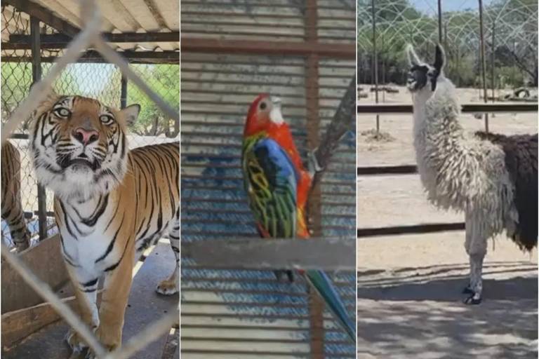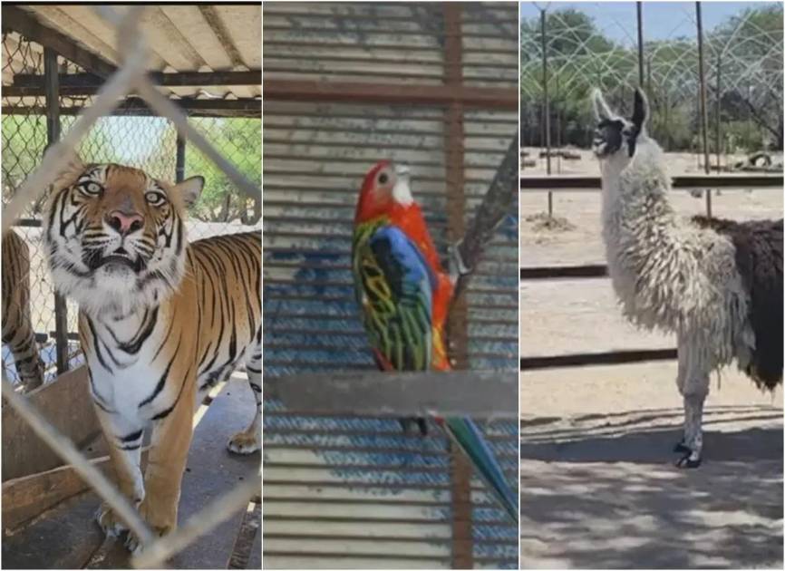 En el sitio se aseguraron dos antílopes, una llama, 10 tigres, tres de ellos cachorros; seis jaguares, cinco leones, dos ciervos rojos, dos águilas Harris, un ave emú, tres aves caracara, un cuervo, dos pelícanos, tres zopilotes, nueve pericos dorsirrojo, un cacomixtle, cuatro loros kramer, dos pericos multicolor y dos mapaches.