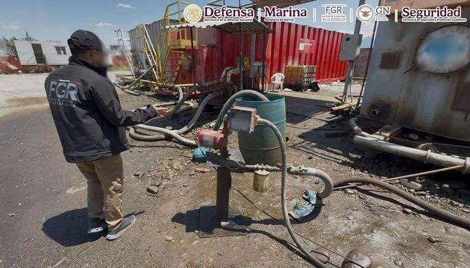 Fue así que se realizó un despliegue operativo entre las instituciones de seguridad y se ejecutó la orden de cateo en dicho lugar, donde se aseguró un millón 200 mil litros de hidrocarburo, 10 contenedores móviles de gran almacenamiento, un tractocamión, 10 pipas, seis tanques cilíndricos, dos bidones con capacidad de mil litros cada uno y un tambo de 200 litros.