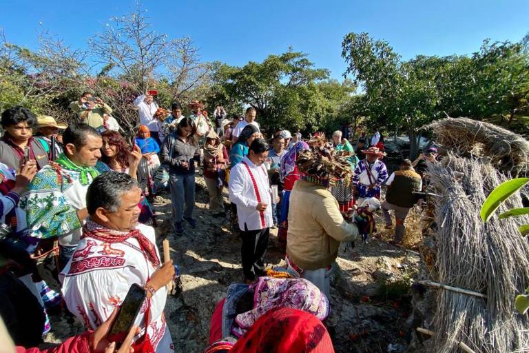 - Autoridades tradicionales, guías espirituales y representantes del Gobierno de México, participan en ceremonias de purificación y ofrendas.