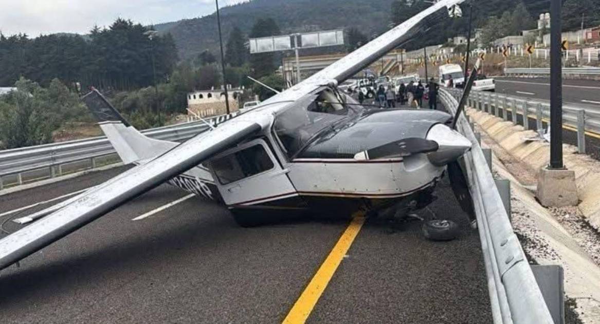 La mañana de este sábado se registró un incidente aéreo que generó alerta en el municipio de Huasca, Hidalgo. Una avioneta con matrícula NZ10YP tuvo que realizar un aterrizaje de emergencia sobre la nueva carretera Real del Monte-Huasca, impactó contra una luminaria.