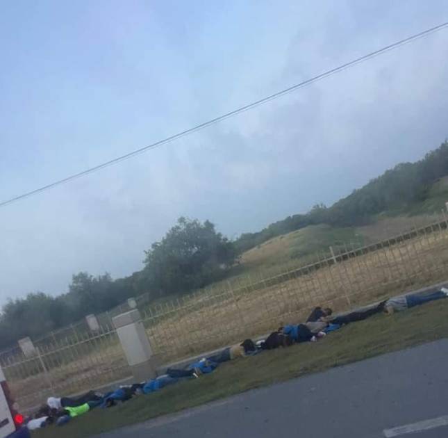 En imágenes compartidas por pobladores se ve a presuntos trabajadores de una maquila tirados en el suelo, quienes buscaban ponerse a salvo de los balazos cuando quedaron atrapados en el fuego cruzado.