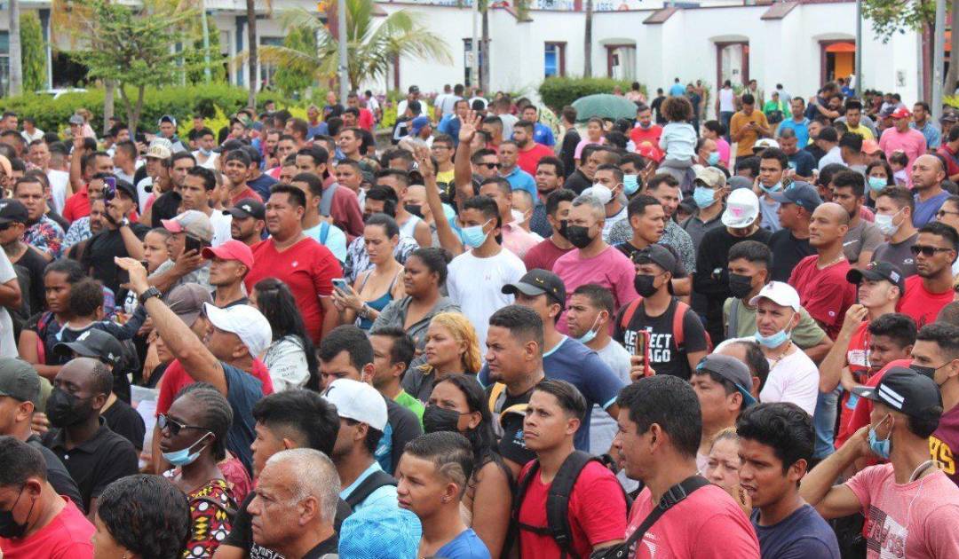 Una caravana integrada por al menos 15 mil migrantes que salió de Tapachula, avanzó más de 40 kilómetros sobre la vía Arriaga-Tapachula, en el estado de Chiapas.