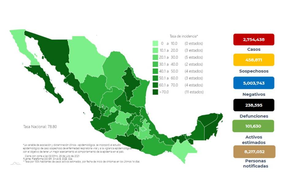 También confirmó 171 muertes más por el virus, por lo que van 238 mil 595 defunciones reconocidas oficialmente por la enfermedad.