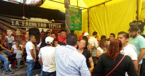 Hay al menos dos decenas de jóvenes en unos 40 metros cuadrados. Se pegan uno al otro y acompañan el coro del artista que toma turno en una de las famosas esquinas de la calle Matamoros, en Tepito.