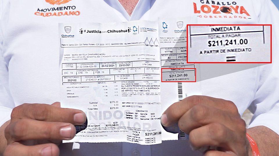 A mediados del presente mes, Lozoya publicó en sus redes sociales la fotografía de un recibo de agua que tenía un monto a pagar de 211 mil 241 pesos acompañada de la siguiente frase: “No es posible que en las partes donde ni el agua llega, los recibos del agua sí lleguen de miles de pesos. Yo voy a tomar las riendas y a bajar las tarifas del agua”.