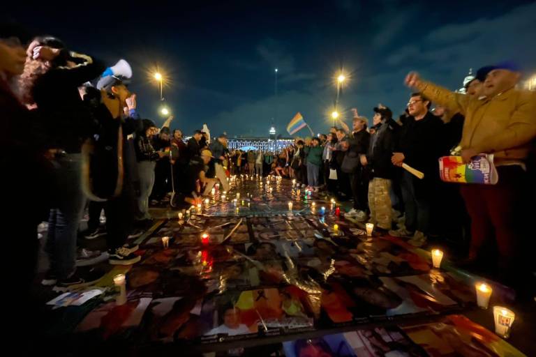“¡¿Qué queremos?! ¡Justicia! ¡¿Cuándo la queremos?! ¡Ahora!”, “Aquí está la resistencia tras”, “Crimen pasional, mentira nacional”, “Ni une más, Ni une más”,“¡Elle, elle, su pronombre era elle!”, gritan las personas congregadas en la Estela de Luz en memoria de le magistrade Jesús Ociel Baena.