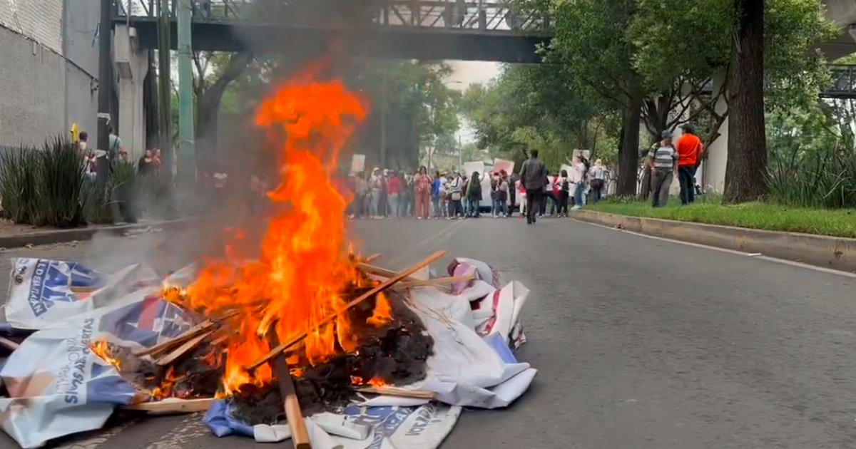 CNTE quema propaganda en sedes de partidos políticos en CdMx