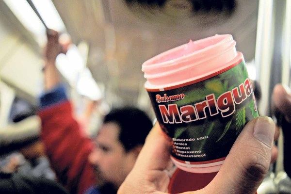 MÉXICO (UNIV)._ Vendedores ambulantes del Metro de la Ciudad de México ofrecen Mariguanol Extra y MarihuanArnica, bálsamos elaborados, supuestamente, con marihuana y peyote, las cuales prometen sanar dolores musculares en minutos.